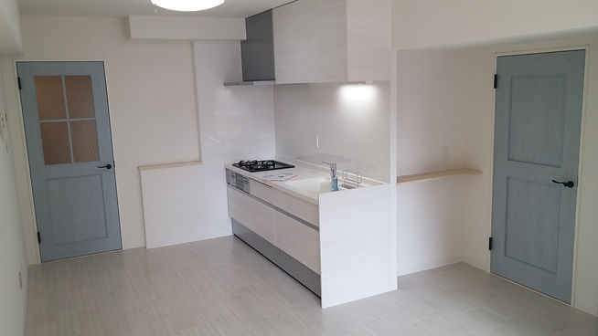 We succeeded in creating a space of about 23 tatami mats in the LDK so that we can produce a more panoramic view from the wide balcony. We also carry out renovations that are particular about products such as doors.ワイドバルコニーからのパノラマをより演出できるようにLDK約23帖の空間を造ることに成功しました。各ドア等の商材にもこだわったリフォームを行っております。